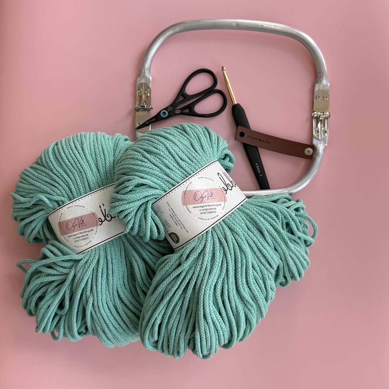 DIY Set Kosmetiktasche häkeln – Komplettpaket mit Kordel, Häkelnadel & Taschenrahmen